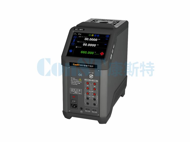 ConST660系列智能干體爐應用多項創新技術,具有升降溫速度快、抗干擾能力強、環境適應性好、控溫區間寬、溫場均勻性好等特點。它采用全觸屏操作,伸縮式提手設計,支持外置標準RTD控溫方式,同時具備兩個被檢通道,可自動校準熱電阻、熱電偶、熱敏電阻、溫度變送器、溫度開關、HART智能變送器等儀表。